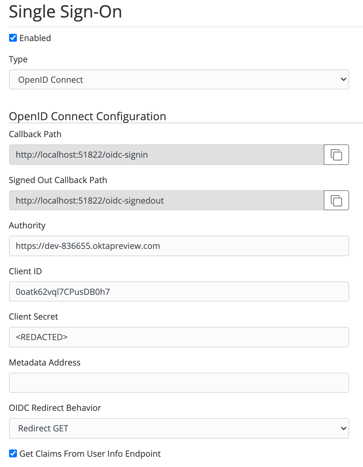 | Client Secret | Copy from Okta |